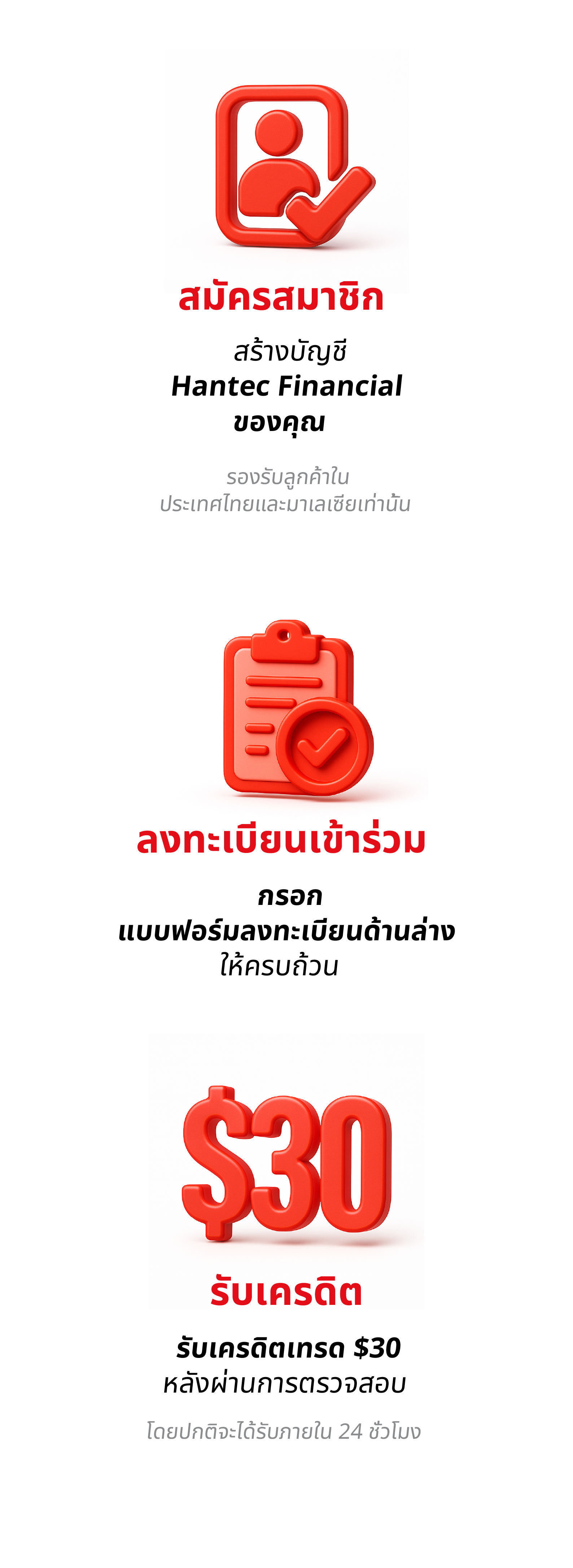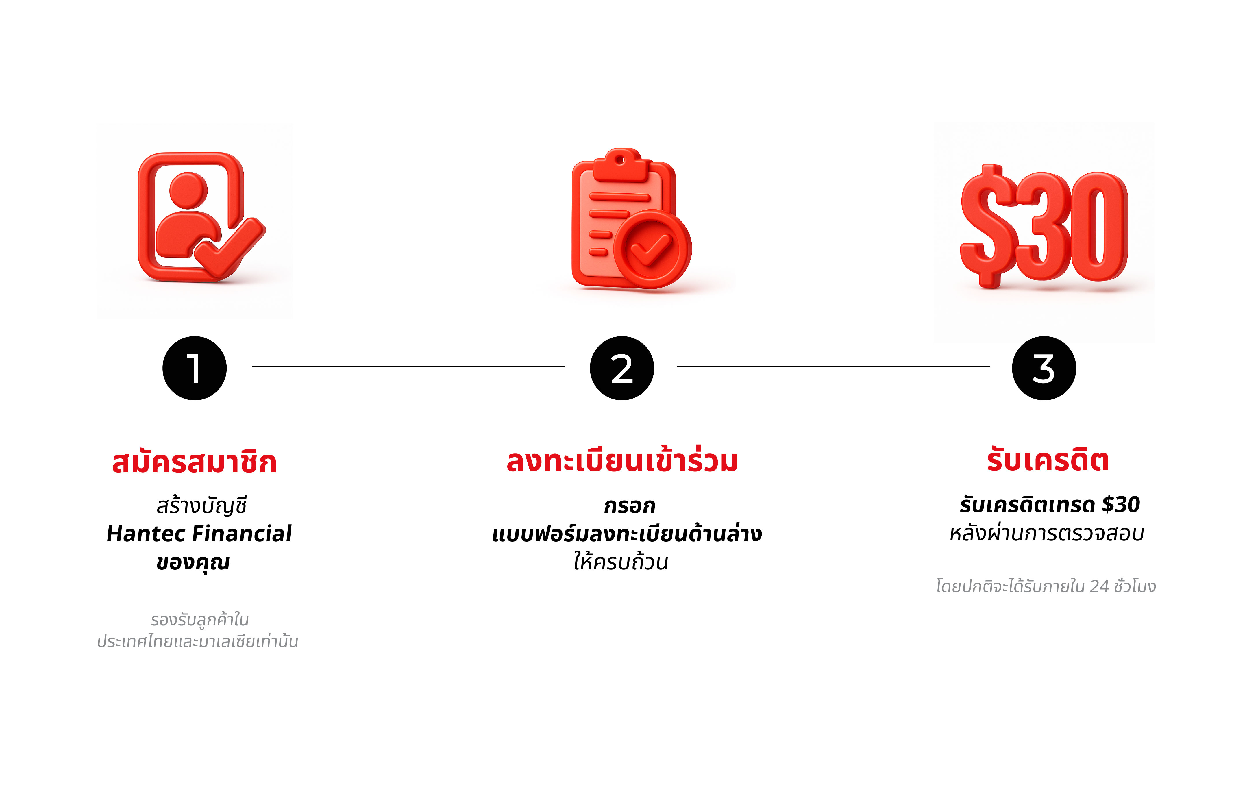 • ผู้เข้าร่วม: ลูกค้าใหม่ของ Hantec Financial ใน ประเทศไทยและมาเลเซีย มีสิทธิ์เข้าร่วมแคมเปญนี้