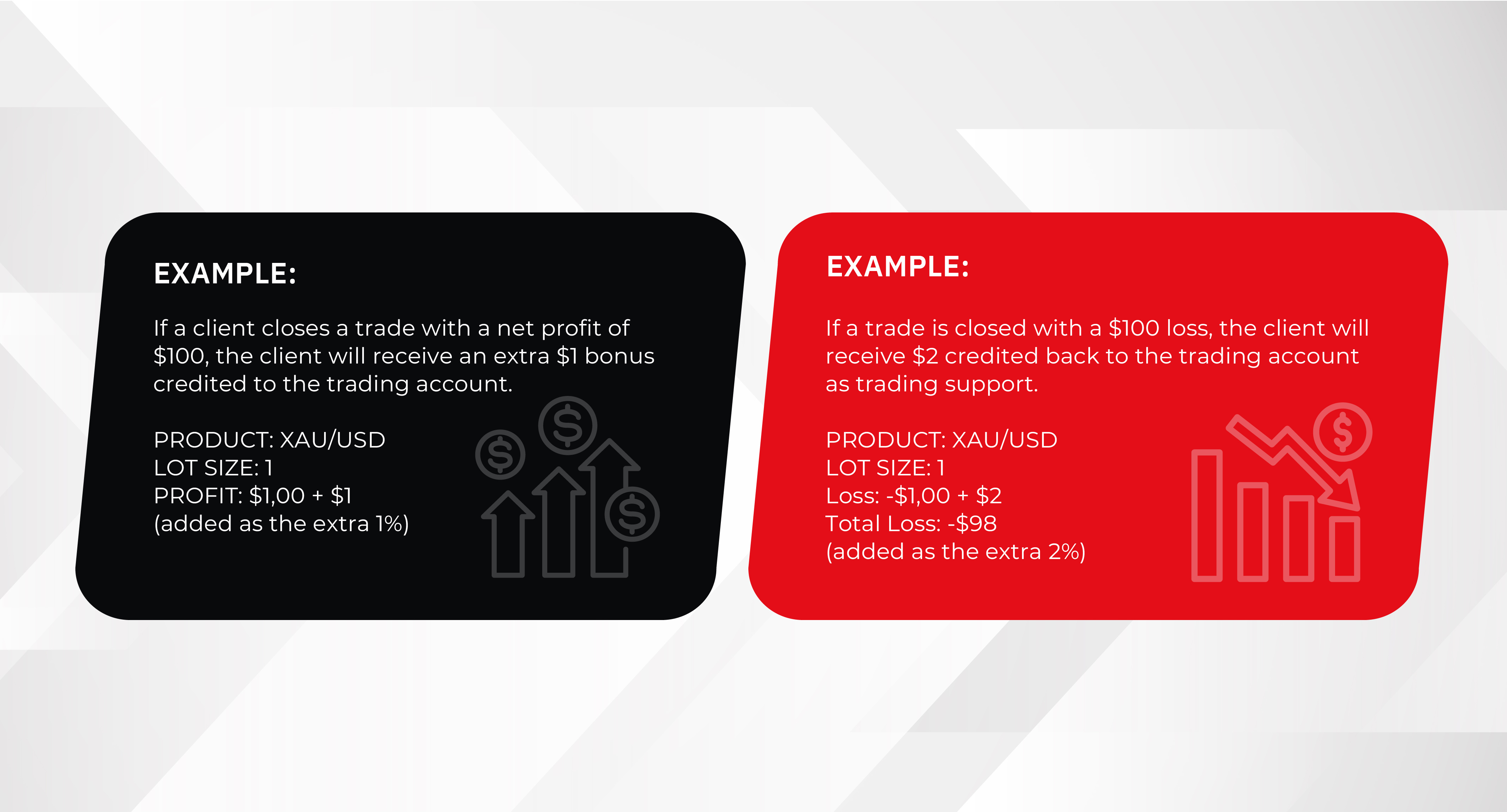 - an additional 1% trading cashback based on the net profit of each closed profitable trade and