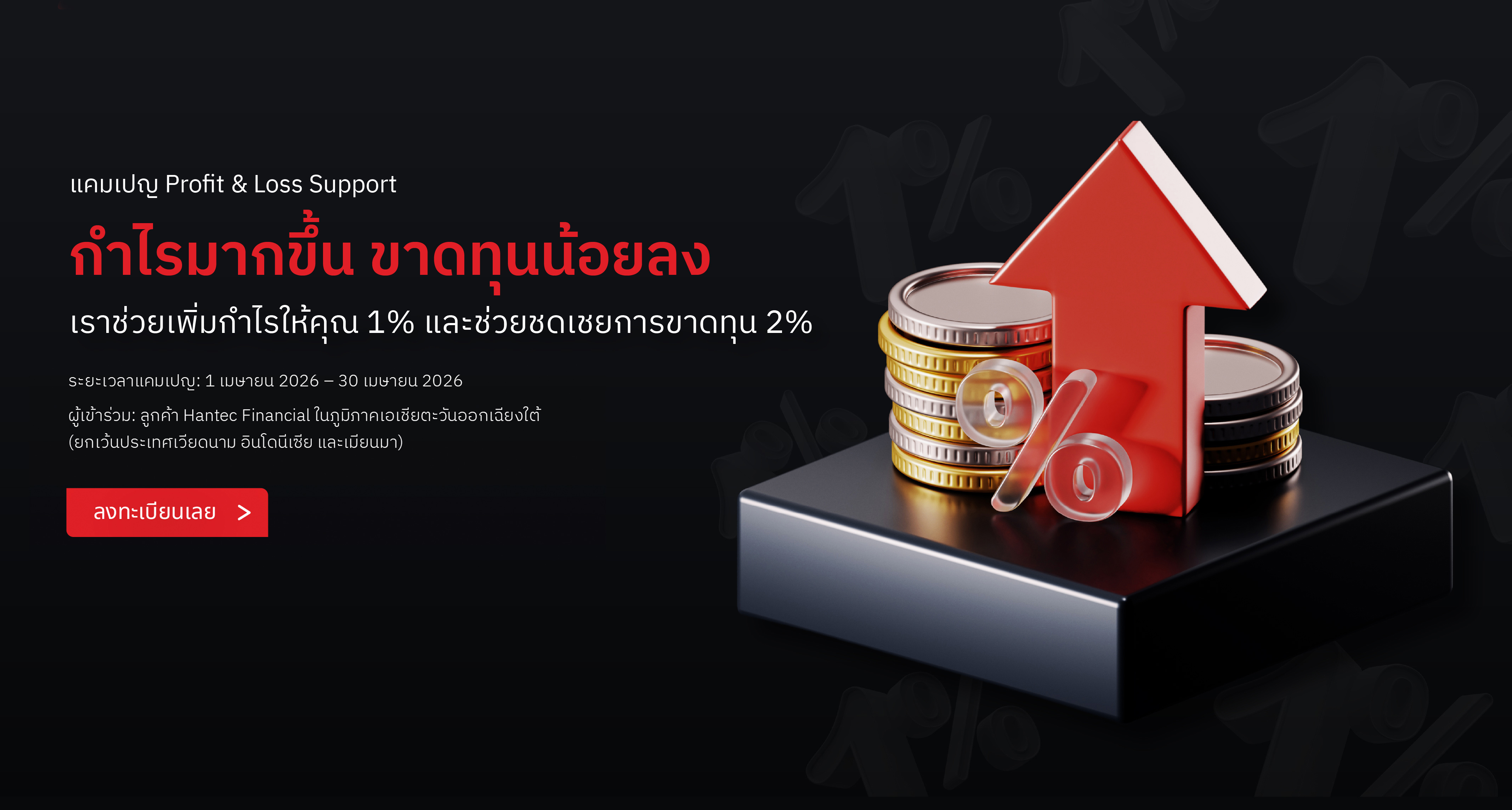 ผู้เข้าร่วม: ลูกค้าของ Hantec Financial ที่มีสิทธิ์ทั้งหมดซึ่งอาศัยอยู่ในประเทศแถบเอเชียตะวันออกเฉียงใต้ (SEA) ยกเว้นประเทศเวียดนาม อินโดนีเซีย และเมียนมา สามารถเข้าร่วมแคมเปญนี้ได้